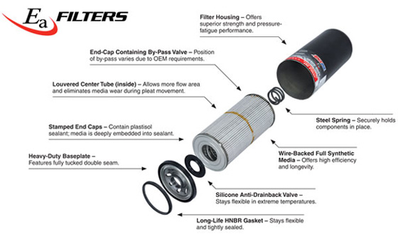 Ea® Heavy-Duty Oil Filters are made with premium-grade full-synthetic media. The strictly controlled processing of this media ensures